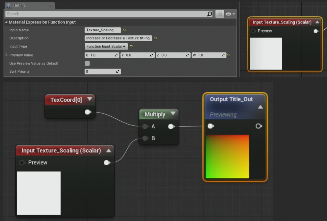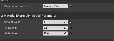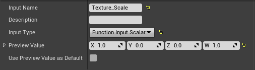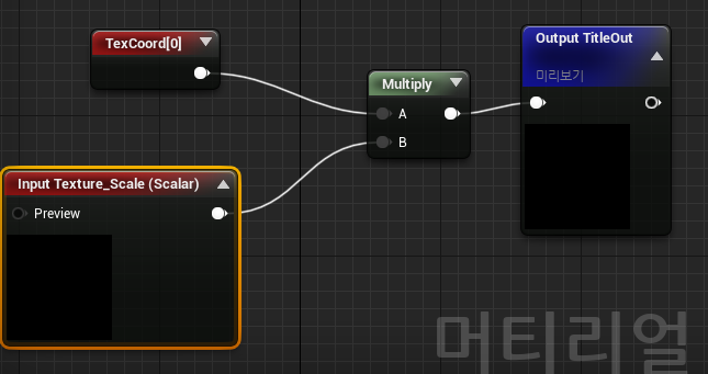 그 이유는 앞으로 진행할 작업이 텍스처 좌표에 값을 곱할 것인데 그 값을 올리거나 내릴 수도 있을 수도 있어서 Texture UV사이즈도 따라 증감할 것이기 때문에 Function Input Scalar로 바꿔준 것이다.