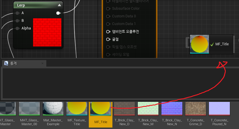 이제 MAT_ENV_Master를 들어가서 똑같이 MF_Title를 드래그 한 다음 MAT_ENV_Glass_00랑 했던 작업을 똑같이 해보겠다.
