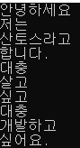 string s = "안녕하세요 저는 산토스라고 합니다. 대충 살고 싶고 대충 개발하고 싶어요.";