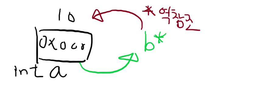 b에다가 *를 사용해서 역참조를 하게 되면 10이라는 결과가 나온다.