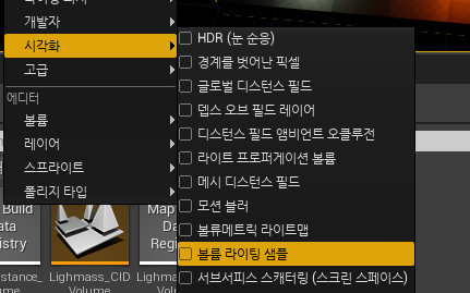 그것을 확인하기 위해서는 표시 -> 시각화 -> 볼륨 라이팅 샘플을 누르면 확인할 수 있다.