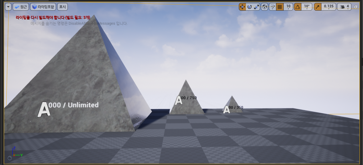 또한 디테일 패널에 Static Lighting Level Scale을 이 값을 증가시키거나 감소시키면 라이팅 볼륨 샘플이 배치된 밀도 또한 감소하거나 증가한다.