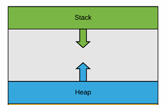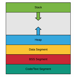위에서부터 스택(stack), 힙(heap), 데이터 영역(BSS segment, Data segment), 코드 영역(code segment)으로 나눠진다.