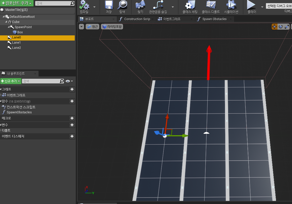 마스터 타일 블루프린트에 arrow 컴포넌트를 새로 추가해줬다.