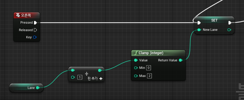 그렇다면 만약 게임을 처음 시작했을 때 Lane의 값은 1로 시작해 그러면 왼쪽을 누르면 New Lane의 설정은 0으로 설정이 된다.