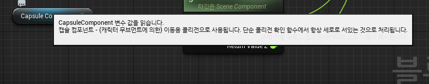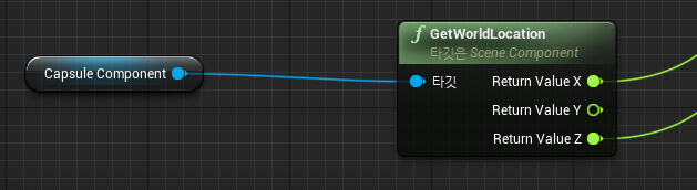 CapsuleComponent의 값을 GetWorldLocation의 위치로 반환하여 Set Actor Location에 보내겠다는 뜻