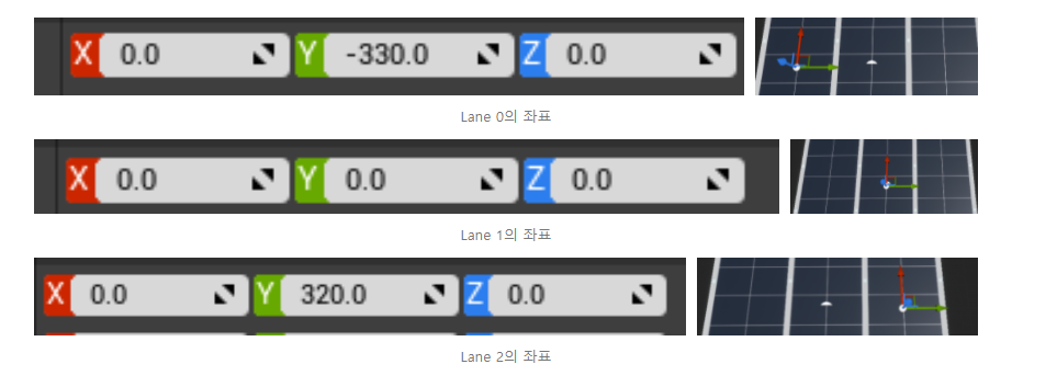 ex) 기본위치 : Lane 1 = 기본 값 1-> 왼쪽을 눌렀다! -> Lane 1 - 1 = Lane 0으로 가게 설정