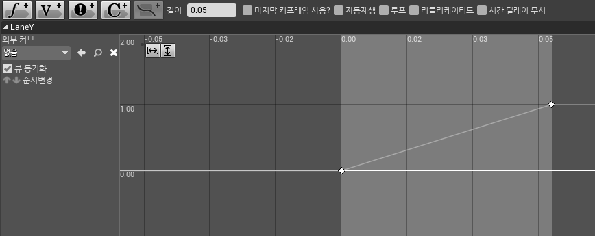 Timeline을 통해 Lane을 0.05초 동안 New Lane으로 선형 보간을 해준다는 거다.