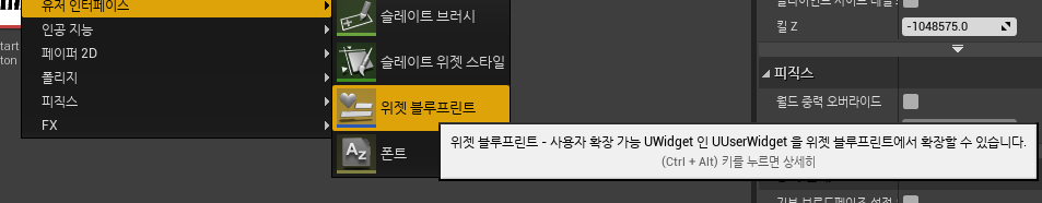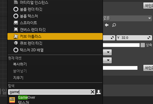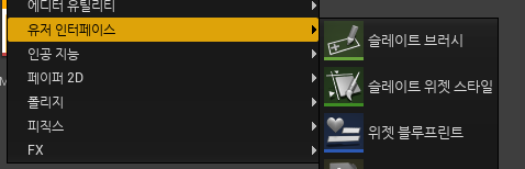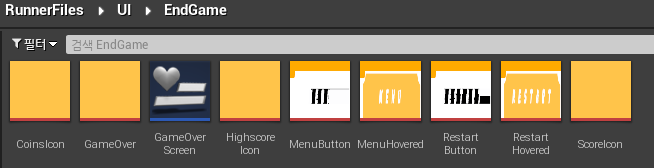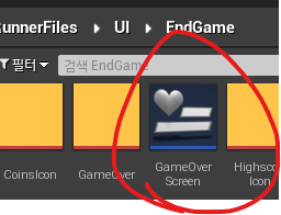 콘텐츠 브라우저에 게임오버UI를 만들 폴더를 생성해서 하는 것이 좋다.