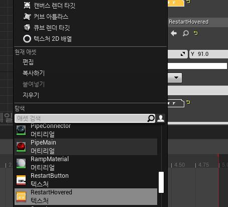 Game Over Screen<- 이건 내가 이름을 그렇게 설정했기 때문에 이 위젯을 생성할 수 있는 것이다.