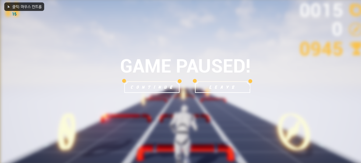 여기서 Continue 버튼을 누르게 되면 지금 보는 UI는 사라지고 게임이 다시 시작이 되는 거다.