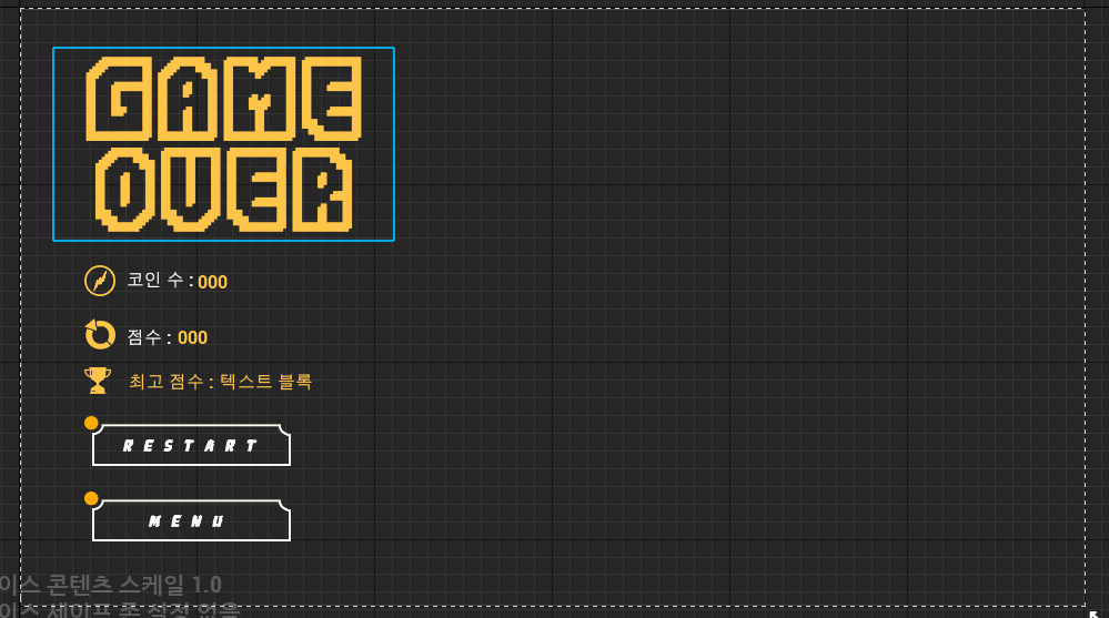 이제 원래 게임시작을 실행할 때 나오는 기본 점수 UI가 있다.