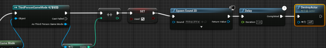 그다음 사운드를 내고 딜레이 1초를 주고 사라지게 합니다.