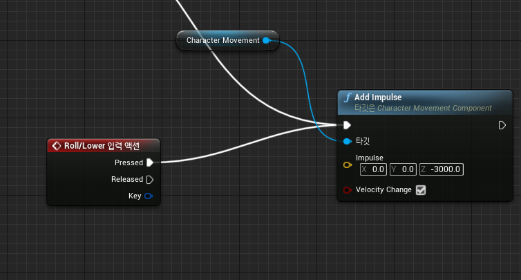 이 키를 누르게 되면 캐릭터 무브먼트가 Add Impulse당하게끔 합니다.