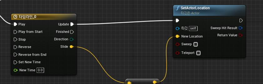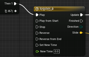 그래서 Get World Delta Seconds를 사용해서 월드의 시간 흐름속도가 적용된 프레임 델타시간을 초단위로 바꾸어서 Delta Time에적용한 뒤 보간 속도는 15정도로 해놓고 Slide와 합칩니다