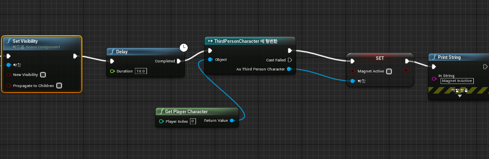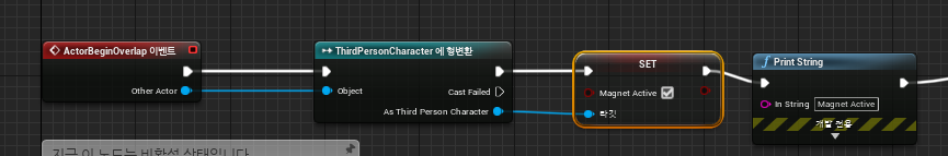 ThirdPersonCharacter에 있는 MagnetActive를 설정할거기 때문에 형변환을 시켜주고 MagnetActive를 true로 체크해줍니다.