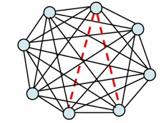 다만 아래처럼 조밀한 형태의 그래프라면 인접행렬이 더 좋습니다.