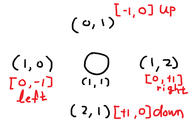 4가지 방향은 위, 아래, 오른쪽, 왼쪽이라고 칩시다.
