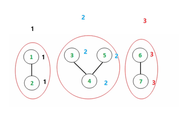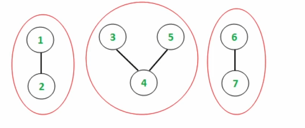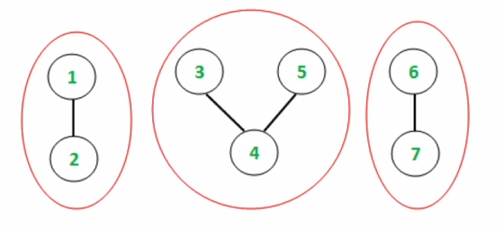 이는 연결된 컴포넌트의 개수는 3개이며 각 정점은 2개 3개 2개입니다.