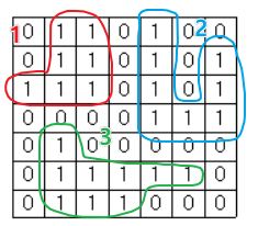위 사진과 같은 맵이 있을 때 1은 갈 수 있는 곳 0은 갈수 없는 곳이라고 했을 때 연결된 컴포넌트의 개수는 몇개일까요?