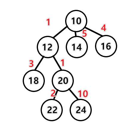 // 현재 노드에서 자식까지의 거리는 2라는 값을 넣어주게 되는 것입니다.
