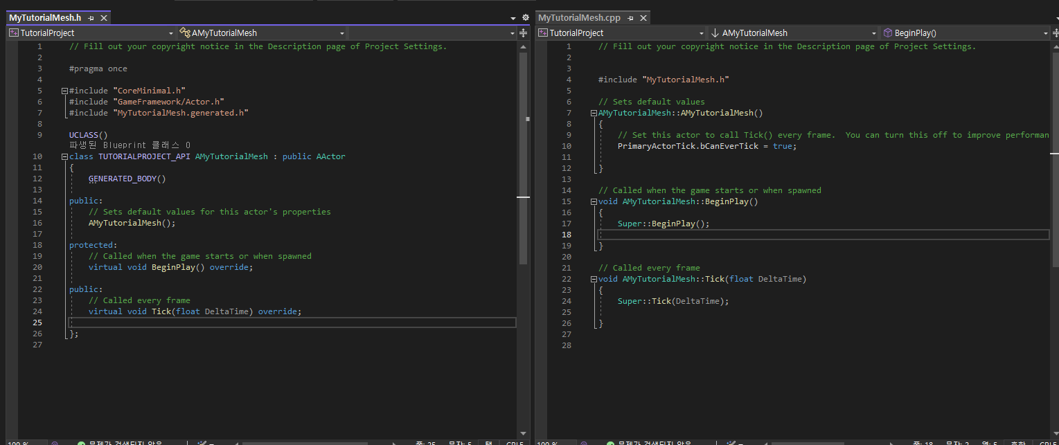 이제 내가 만든 MyTutorialMesh클래스를 배치해보자.