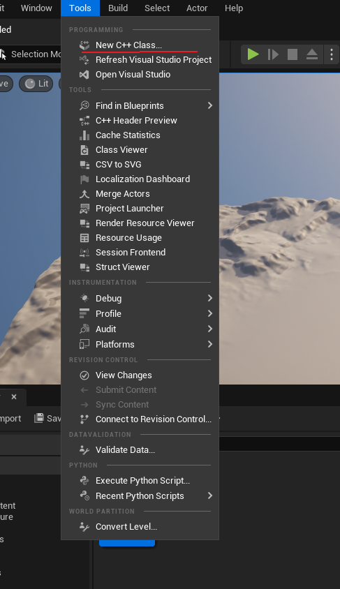 언리얼이 재시작이 되면 이제 C++ 클래스를 생성해보자.