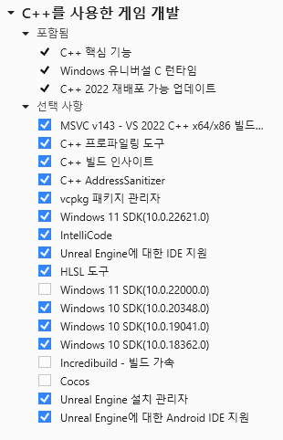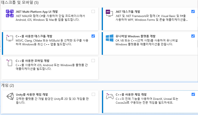 그래서 VS2022설치할 때 사전에 필수로 다운받아야 할 요소들이 많다.