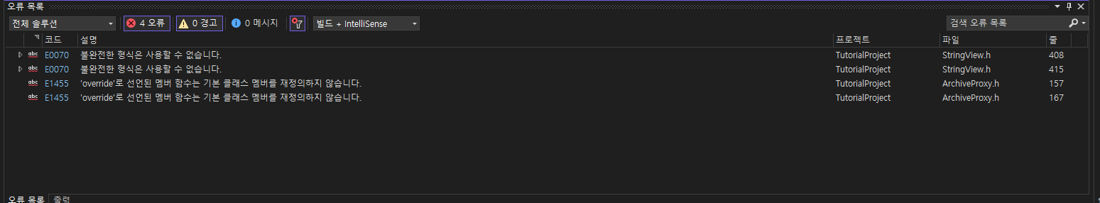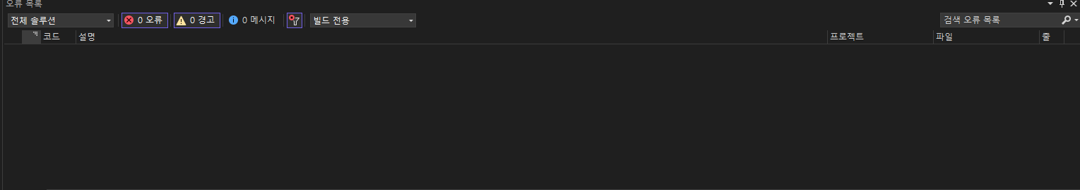Always show Error List if build finishes with errors = 오류로 인해 빌드가 종료될 때 항상 오류 목록 표