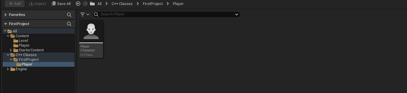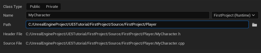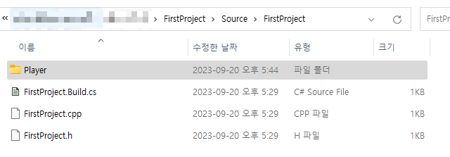 이렇게 Player라는 폴더가 생겨서 그 안에 Cpp파일과 H파일이 같이 생성이 되기 때문에 나중에 효율적으로 관리하기 위해서는 이게 꼭 필요하다고 한다.
