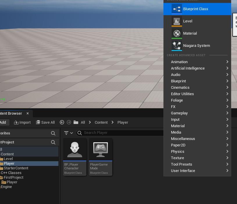 그러면 PlayerCharacter 클래가 제대로 생성이 된 걸 확인할 수 있다.