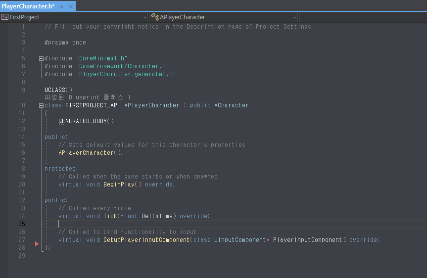 PlayerCharacter.h파일에 가서 함수를 정의해 주자