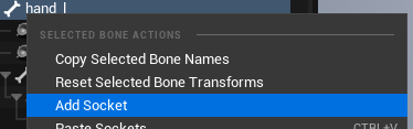 또한 우리는 아이템을 주우면 어디에 장착할지 설정해주어야 하기 때문에, 캐릭터의 스켈레톤으로 가서 우리가 장착하려는 부분의 소켓을 생성해주자.