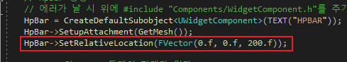 // 에러가 날 시 위에 #include "Components/WidgetComponent.h"를 추가해주자