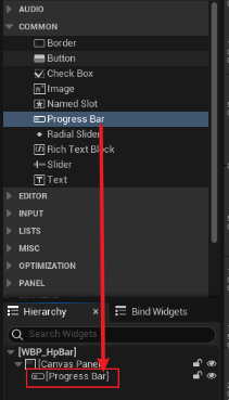 WBP_HpBar에 있는 PB_HpBar의 이름을 똑같이 하는 것이 중요하다.