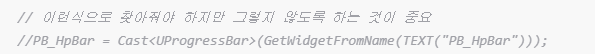 //PB_HpBar = Cast<UProgressBar>(GetWidgetFromName(TEXT("PB_HpBar")));