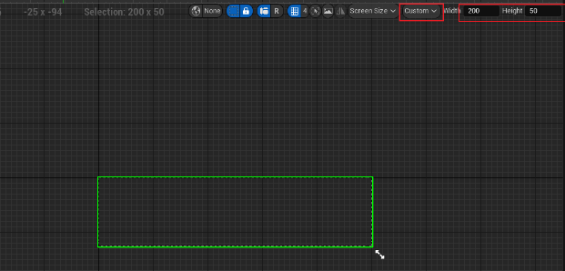 이렇게 추가가 된 것을 볼 수가 있는데 우측 상단에 스크린 사이즈를 커스텀으로 설정해놓고 Width : 200, Hegiht : 50으로 설정해주도록 하자.