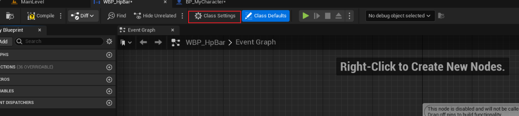 MyCharacterWidget.h파일에 보면 meta=(BindWidget)이 있는데 이것은 블루프린트에서 자동으로 찾아주는 역할을 한다고 한다.