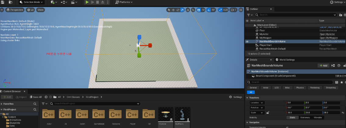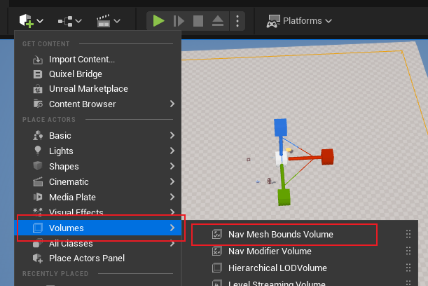 NavMeshVolume을 생성해서 AI가 갈 수 있는 길을 구워주자.