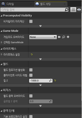 - 현재 작업 중인 레벨 고유의 세팅을 조정하거나 오버라이드를 할 수 있다.