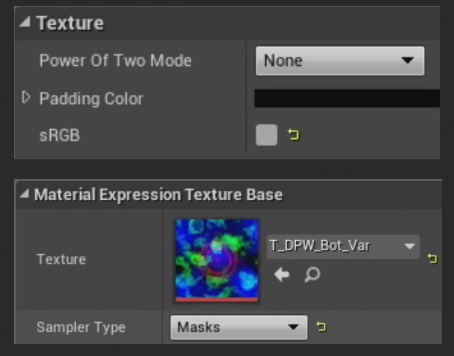 또 이것을 머티리얼에 사용하려면 Sampler Type이 Masks로 설정되어야 한다.
