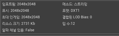 DXT1로 포맷이 되어있고 LOD Bias는 0